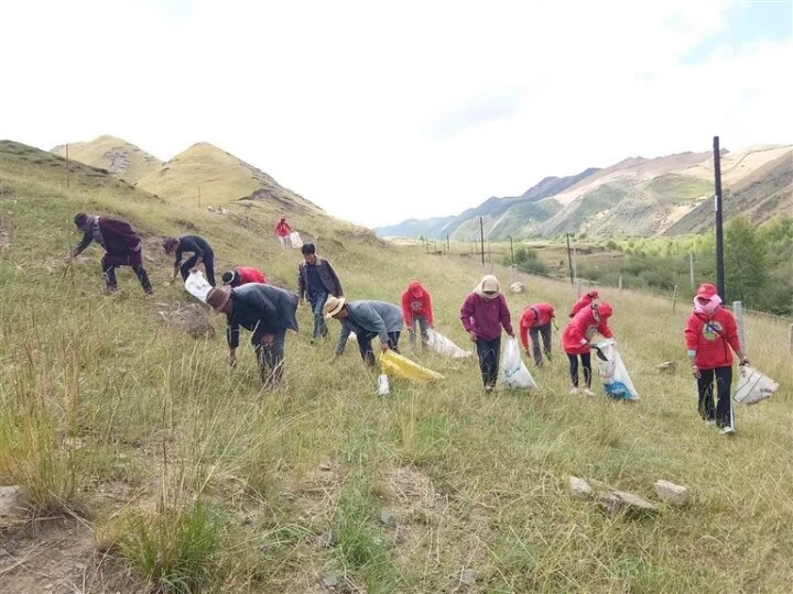 談及環(huán)保初衷,端主加的記憶回到了1998年。那時(shí),草原上的環(huán)境變化讓人憂心忡忡。曾經(jīng)的過馬營(yíng)鎮(zhèn)以水草豐美著稱——564口清泉水滋養(yǎng)著這片富饒之地,過馬營(yíng)在藏語里有著“多泉之川”的意思。然而,隨意丟棄的垃圾讓草原日漸“傷痕累累”,更令人痛心的是,牛羊誤食垃圾而死亡的悲劇頻頻發(fā)生,端主加回憶說:“每到春天,牛羊死得特別多,我們查看后發(fā)現(xiàn),它們的胃里都是塑料袋。”