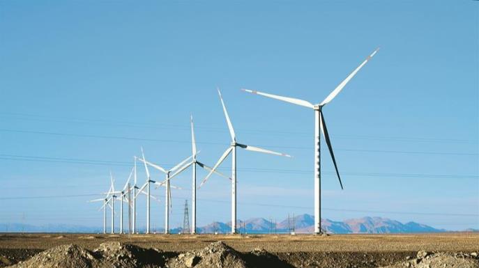 碧藍天空下,潔白的風力發(fā)電機高高聳立。陳陽 攝