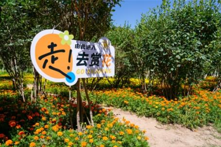 “由此進入,遍野繁花潮出圈。”“走!由此進入去賞花。”記者看到,在孔雀草花海的入口處,醒目的指示牌正“熱情”地向游客發出邀約。