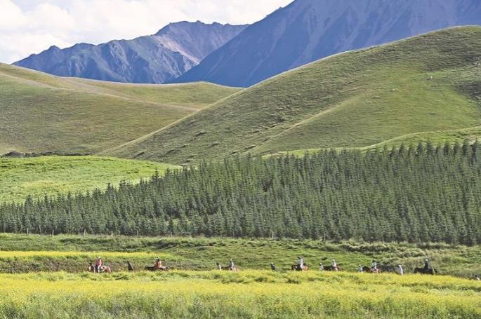 身處祁連山林,郁郁蔥蔥,清澈的溪流潺潺流淌。游客們沿著山間步道攀登,呼吸著清新的空氣,負氧離子高達每立方厘米7600多個。站在山頂,極目遠眺,祁連多彩的地貌盡收眼底,紅色的丹霞地貌與翠綠的草原、金黃的油菜花相互映襯,色彩斑斕,讓人不禁心曠神怡。正在山林里帶孩子們度假的來自湖北的游客徐女士興奮地說:“這里太美了,太震撼了,我感覺就像走進了童話世界,每一處景色都讓人陶醉,尤其是讓孩子們更加體驗到了大自然的美。”