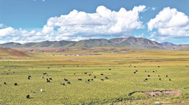 記者來到曲麻萊縣牦牛良種繁育園區時,正趕上雨歇云開。