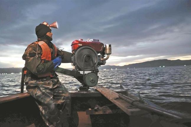 夜幕降臨,亮起一盞盞漁燈,鋪滿湖面,仿佛星星“掉進”龍羊湖,組成了湖面萬里星河,成為鄉村旅游發展“打卡地”。沈海明駕駛漁船駛入布網區,隨著絞盤作響,漁網出水,無數銀鱗在燈光中跳躍,一網網的收獲變成了漁民們實實在在的收入。漁民們的幸福生活在“下網”與“收網”的漁歌唱晚間邁向更好的明天。