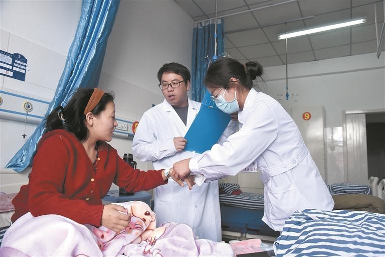 午后,溫暖的陽光照進病房的窗戶,母親在兒子攙扶下慢慢下床站起身,試著完成了一個下蹲動作,母子相互望著,臉上都露出了燦爛的笑容。“以前阿媽腿疼得下不了床,要找車去西寧的醫院看病,光路費就得花兩百多。家門口的醫療條件變好了,在縣醫院住院一周多,通過中醫治療母親的癥狀逐漸緩解,現在已經可以走動了。”住院病區里,陪護母親的才讓多杰說。
