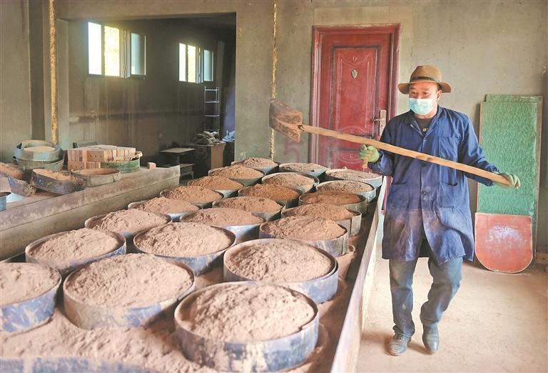 面坯被埋進(jìn)高溫的高嶺土中,靜靜等待蘇醒。烈火舔舐,高溫滲透,原本白生生的面坯,漸漸褪去生澀,披上一身金黃。待到“出土”時(shí),更尕卓瑪用打磨機(jī)輕磨饃面,泥土與焦皮簌簌落下,露出細(xì)密溫潤的紋路——像極了腳下這片被黃河水沖刷了千年的土地。