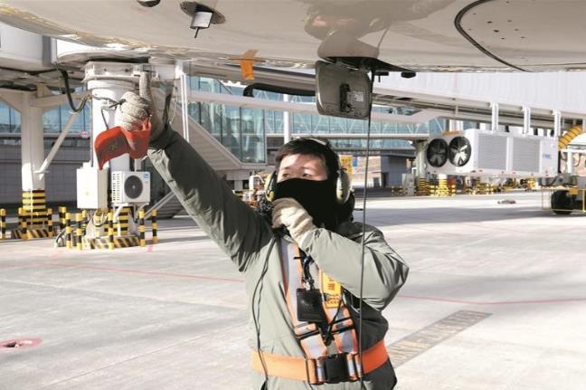 飛機安全入位,民航機務維修人員開始對飛機進行全面檢查。