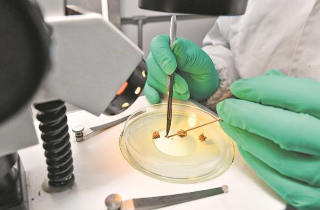 在青海,一粒看似普通的馬鈴薯,因被注入科技“芯片”,正深刻改變著整個(gè)產(chǎn)業(yè)的發(fā)展水平和質(zhì)量。優(yōu)質(zhì)脫毒種薯是推動(dòng)馬鈴薯產(chǎn)業(yè)高質(zhì)量發(fā)展的關(guān)鍵所在。在青海大學(xué)農(nóng)林科學(xué)院的實(shí)驗(yàn)室中,王艦教授帶領(lǐng)團(tuán)隊(duì)正借助解剖鏡,對馬鈴薯莖尖分生組織進(jìn)行一場精細(xì)如“心臟手術(shù)”般的操作。那個(gè)如同針尖般的組織,經(jīng)過精準(zhǔn)剝離、無菌培養(yǎng)與科學(xué)誘導(dǎo),最終煥發(fā)新生,育成一株健康的脫毒苗——這正是科技賦能農(nóng)業(yè)的生動(dòng)寫照。