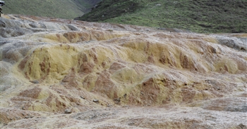 此外,在草達坂村東南部的瓦翁山下是被阿柔草原私藏的措江(泉水名)。措江是一處天然水池,遠望該水呈綠色,當地村民相傳,該泉水為青海湖的一直只眼睛。每年農歷五月初一,是祭泉眼最隆重的一天,屆時,當地牧民會不遠十幾公里,或騎馬,或駕駛摩托車,前來煨桑祈福。由于該水有鹽的成分加之經過多年的流淌,將泉水周邊的“打造”成一道道奇觀,凡是泉水流過的地方,地面都呈現出誘人的金黃色。(上)