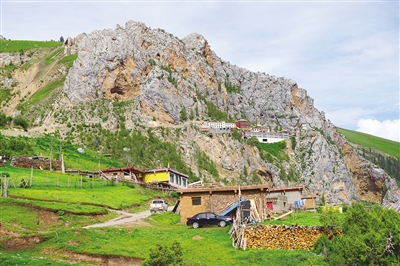 ——巴麥村。坐落白扎林場深處的巴麥村,石羊悠閑自在地經過村莊,經過石砌的房屋,經過轉動嘛呢的村民,它們沒有一絲驚恐,早就和村莊融洽成一種廣大的自在。山下平曠處是空靜的學校操場,播放著某個流行樂曲,仿佛一下子就把遙遠和隔世的況味與現代世界來了一回通融。而在不遠處,在危乎高哉的制高點上,懸崖古寺尕爾寺凌空蹲踞。而眼前松樹柵欄環繞的房舍,高高聳立的木頭架子,一節一節堆放的木樁,以優美的弧度微微隆起、鋪開的山坡,以及那些奇崛的巖石和山頂,原始林木依著山勢排開的那種蔚然深秀的陣列,將柔美與雄奇協調地融合在一種亙古靜好的氛圍里,那情調,超然里透著世俗,世俗里又透著超然。