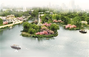 據(jù)介紹,為了讓游客體驗(yàn)親水的樂趣,西湖周邊將建設(shè)一處親水平臺,同時(shí),在西湖上,依照杭州西湖蘇堤的樣式,建設(shè)一處堤壩,再現(xiàn)杭州西湖美景。此外,在對原有水系駁岸進(jìn)行適當(dāng)調(diào)整,增加親水性、趣味性、安全性。首先,依托西湖湖心島和仿古建筑,建設(shè)植物景觀菩提塢,配置菩提、榆葉梅等營造禪意空間;在西湖上,還要建設(shè)一處西湖塔,可供游人參觀。