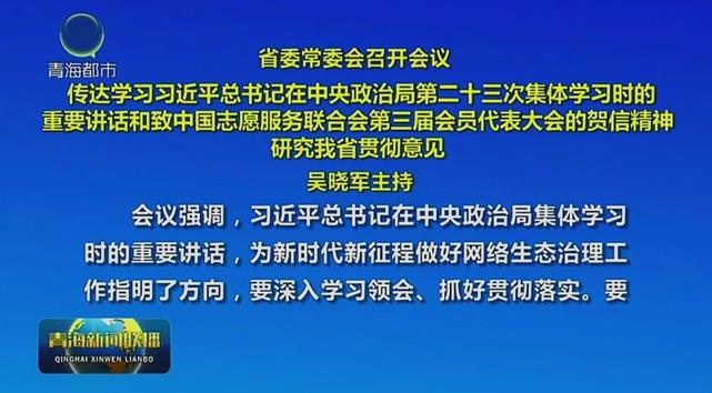 中共青海省委十四屆十次全會舉行 省委常委會主持全會 吳曉軍...