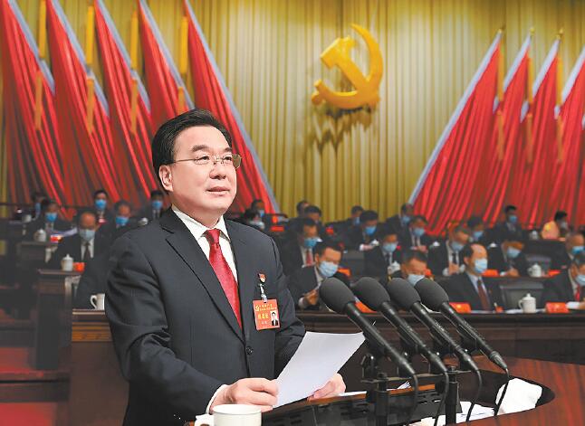 信長星代表中國共產黨青海省第十三屆委員會向大會作報告